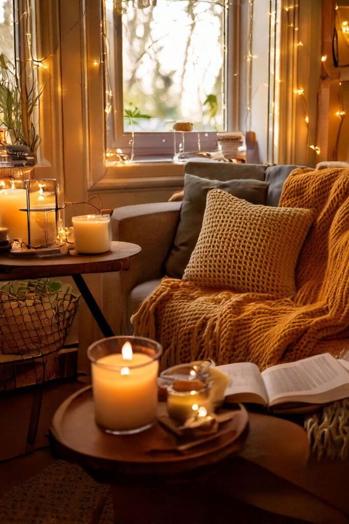 • Cria um cantinho de conforto, com uma manta, livros e luz suave