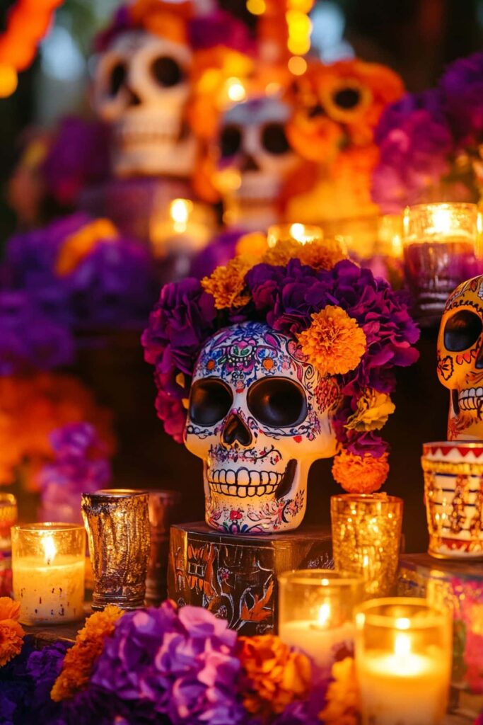 Os altares são montados com flores, velas, iguarias preferidas e fotografias. Tudo é cor e celebração. Não há luto pesado, há gratidão. “A morte é celebrada com uma grande festa. Nestes dias, recebemos os que já partiram com o máximo de beleza e alegria. E é por isso que existem tantas cores, aromas, músicas, comidas”, enfatiza.