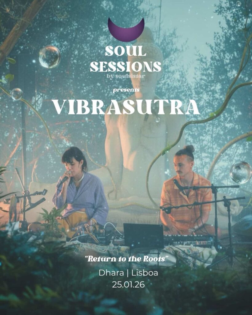 Os primeiros convidados são os VibraSutra, um projeto que cruza sonoridades orgânicas e contemporâneas. A música deles é um convite à introspeção e à presença consciente. É o som perfeito para nos ajudar a desacelerar o corpo e abrir o sentir neste início de ano.