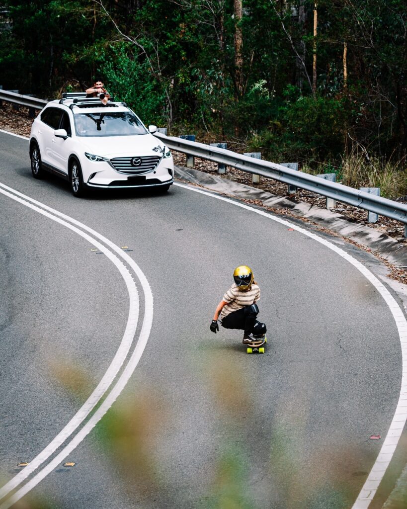 Definitivamente algo mudou desde então. Sinto que cheguei a um ponto em que estava tão confiante que podia simplesmente puxar os meus limites o tempo todo. Comecei a sentir-me invencível e quase esqueci que estava a fazer algo realmente perigoso. Ao fim de um tempo torna-se tão fácil fazer coisas super perigosas, porque não há muita coisa na tua mente, e acostumas-te a isso… Depois do acidente, tudo mudou. Estava presente o tempo todo na minha cabeça: “OK, isto pode matar-me”. Levei bastante tempo a recuperar. Ao fim de meio ano, eu já estava a implorar para voltar ao skate — o que foi muito cedo, sim, mas eu queria voltar ao mesmo lugar onde o acidente aconteceu. Foi bastante útil para tirar os pensamentos negativos da minha mente, mas também foi um momento muito difícil. O lugar é incrível — uma estrada no topo de uma montanha que cai 400 metros para o nível do mar —, e seria tão triste para mim se mantivesse uma memória tão terrível de um lugar tão bonito. Eu queria voltar para fazer as pazes com tudo aquilo. Uma vez lá, percebi quão intenso era o meu medo. Quase comecei a ter ataques de pânico novamente e a sentir que não conseguia respirar. Eventualmente percebi que só tinha de baixar as minhas expectativas de como ia andar de skate, e só tentar divertir-me de novo na estrada. Isto tornou-se o meu mantra: que não estava a tentar atingir qualquer nível de performance, mas simplesmente a tentar alcançar aquela diversão de adolescente. Foi uma longa jornada, passo a passo, e hoje sinto que não sou tão imprudente. Corro riscos mais calculados, e já não arrisco de todas as vezes que ando de skate. Às vezes só fico completamente na minha zona de conforto, que mesmo assim já não parece nada confortável para quem vê de fora (risos). Antes do acidente, sentia que estava a testar-me o tempo todo. E realmente, quando aprendes a ouvir o teu corpo e a tua mente, podes fazer isso de uma forma mais sustentável. Esta é provavelmente uma das lições mais importantes em qualquer desporto extremo: aprenderes a analisar primeiro o que está a acontecer contigo e perceberes que, se estás com alguma tensão ou algum stress, então geralmente não é tão seguro. Hoje em dia sou mais cuidadosa, confronto-me mais com como me sinto e ouço mais o meu corpo e mente.