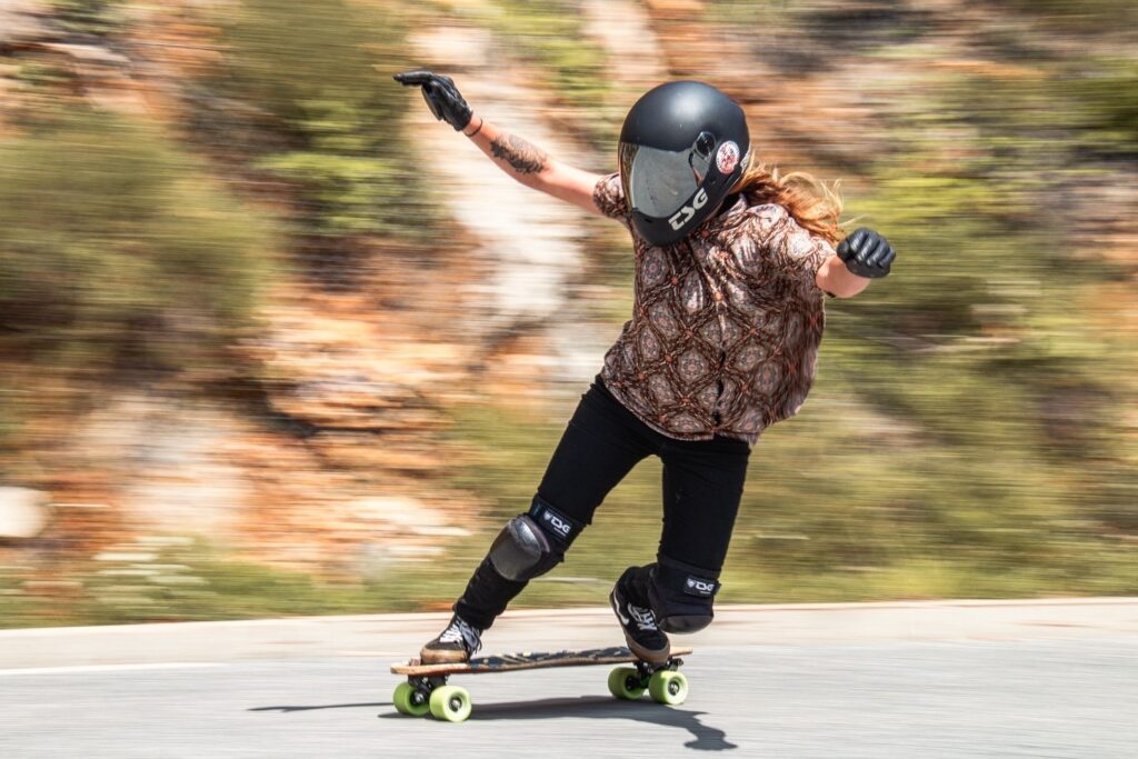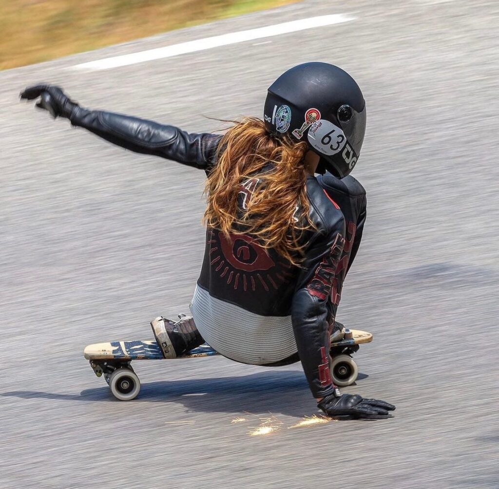 Anna Pixner, 29 anos, nascida e criada em Innsbruck, no coração dos Alpes tiroleses, é oficialmente a mulher mais rápida da Áustria no downhill skateboarding e bicampeã mundial de stand-up racing (2019 e 2022). Com velocidades que ultrapassam os 100 km/h em estradas de montanha, compete nos eventos mais temidos do circuito internacional, como Kozakov (República Checa), Teutônia (Brasil) ou as estradas secretas da Serra da Estrela.